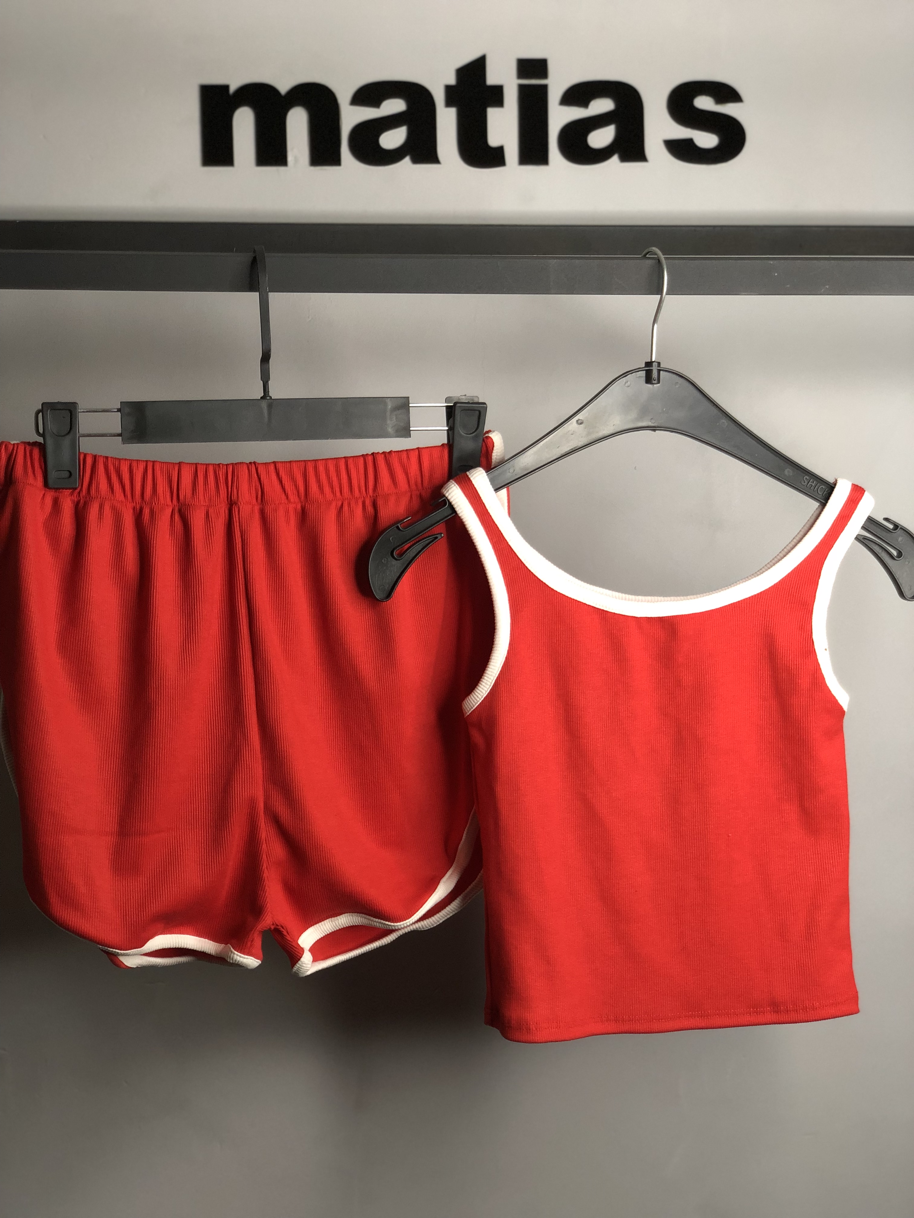 تاپ و شلوارک کبریتی نوار دوزی تک رنگ قرمز فری سایز