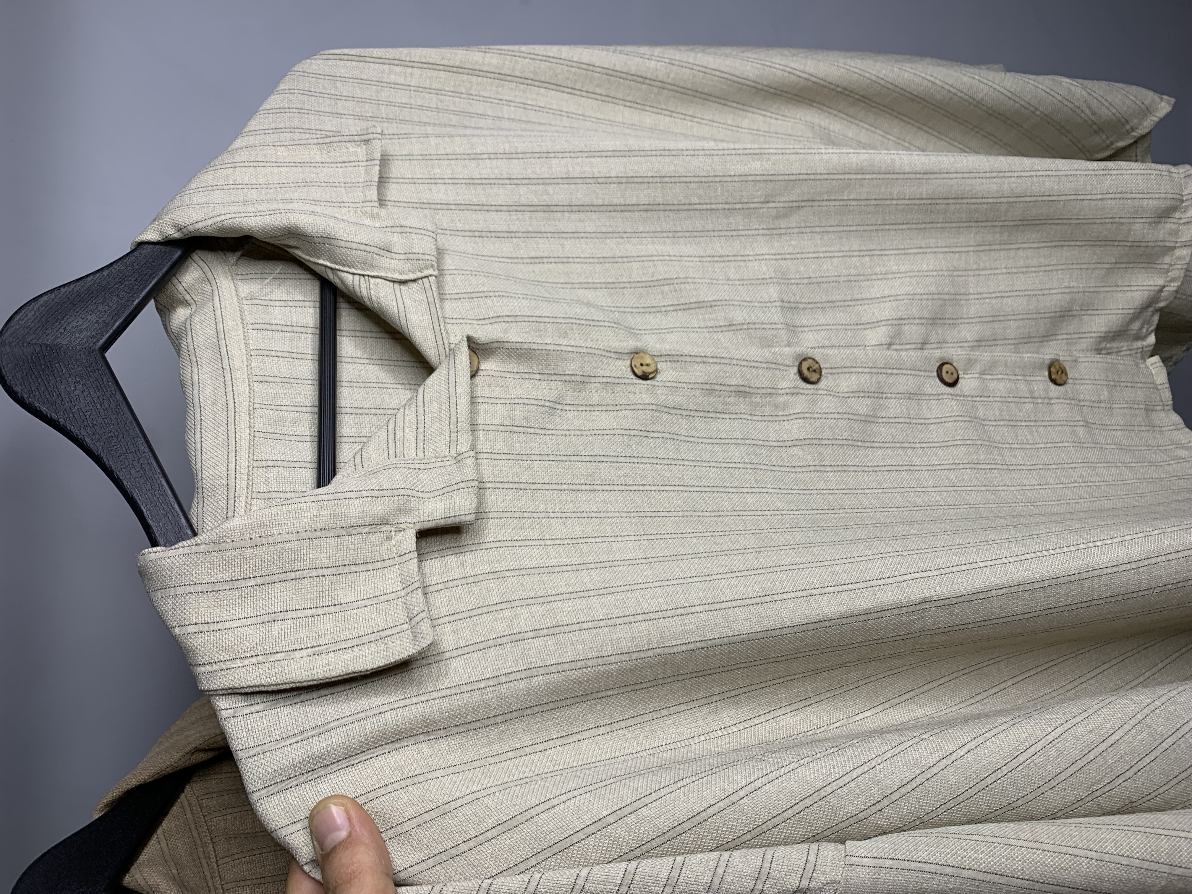 شومیز دونخ زارا راه راه مدل آستین کیمینو قواره دار جلوی کار در حد ۴تا ۵ سانت کوتاه تره و یه حلالی از بغل داره به پشت یه مدل با نمکی داره