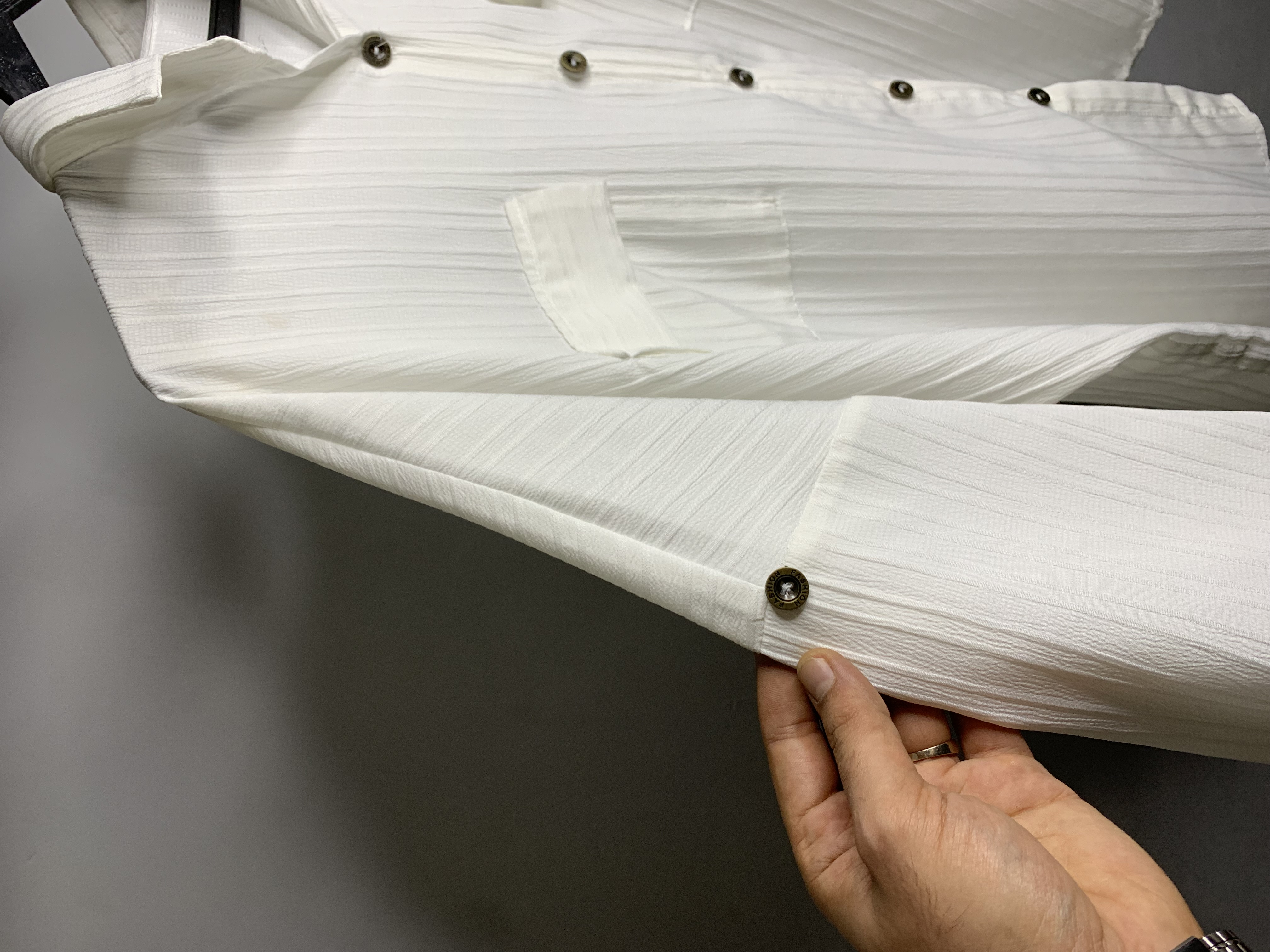 این شومیز پارچه آیوا آستین کیمینو که روی آرنج دکمه خورده و میشه آستین تا هم زد و با بندینکی که داخل آستینه بست و با قد کوتاه ترم استفاده کرد مثل بیشتر این سبک شومیزای راحت پوش