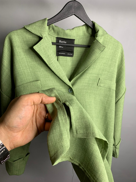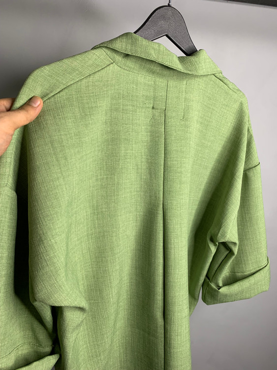شومیز دخترانه دونخ آستین سه ربع و پاکتی داره کمی سرشونه افتادست و دوتا جیب کوچیک نما داره