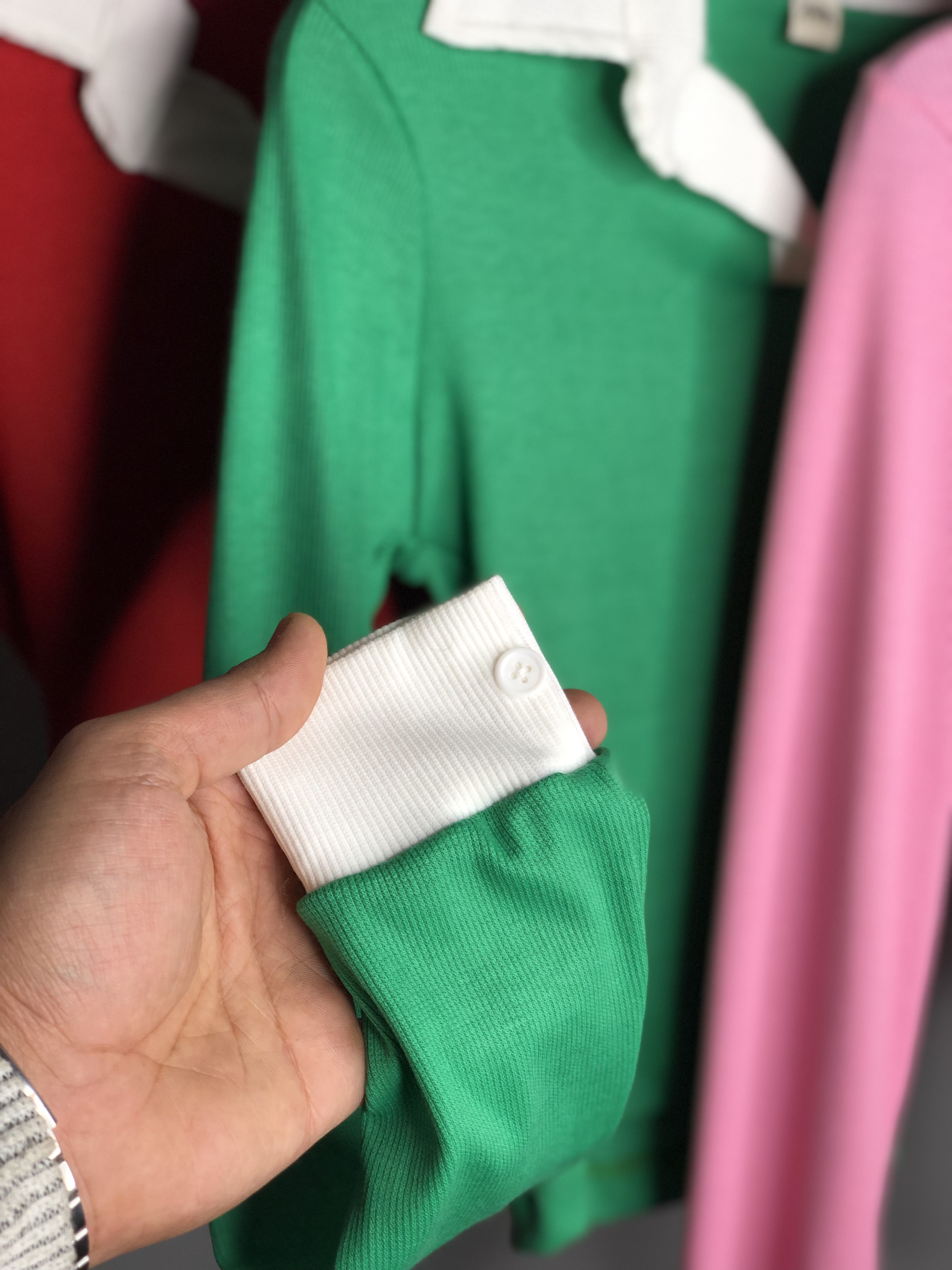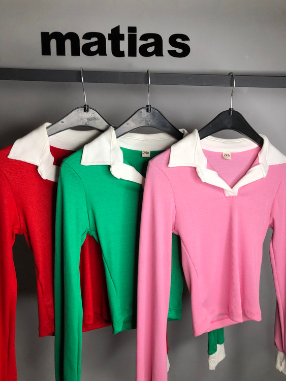 کراپ یقه مردانه در سه رنگ سبز قرمز و صورتی