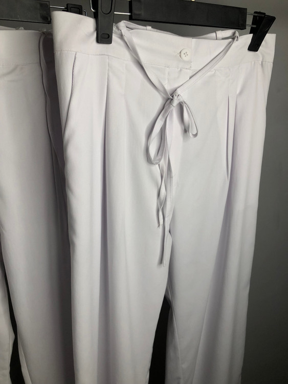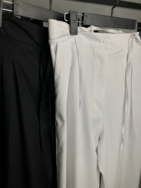 این شلوار پشت کمر یه کش ۱۰ سانتی داره و کمر فاق بلندی داره و با بندینک هایی که داره دور کمر بسته میشه