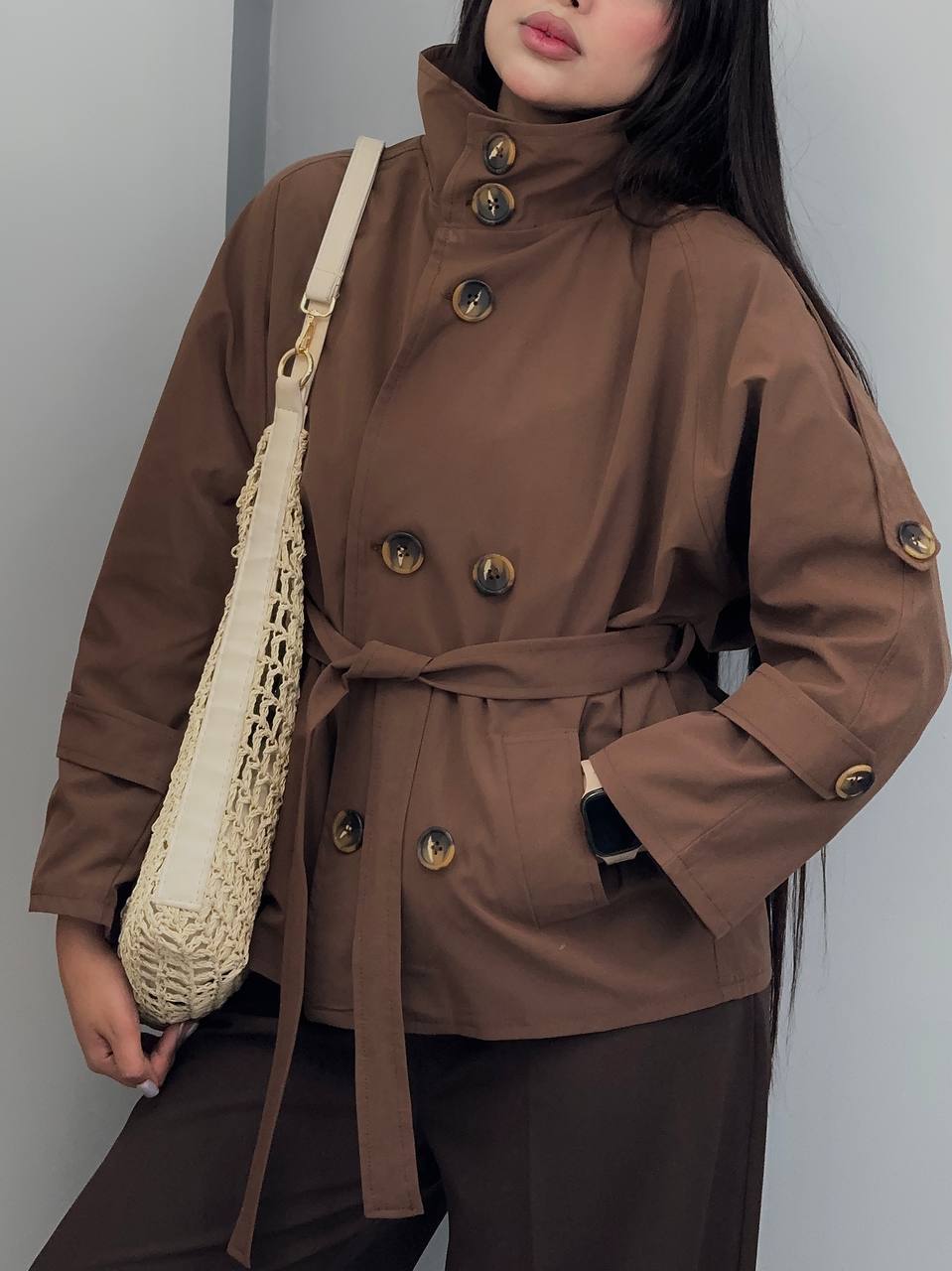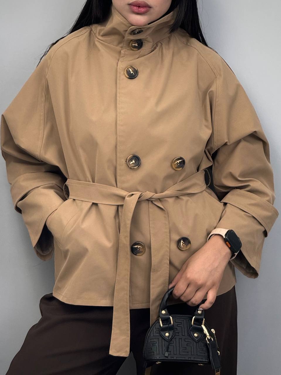 بارونی برشکا پشت شنلی زنانه کمربنددار فری سایز در رنگبندی