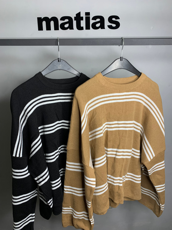 بلوز بافت زنانه قواره دار سه خط‌‌ راه راه فری سایز در رنگبندی