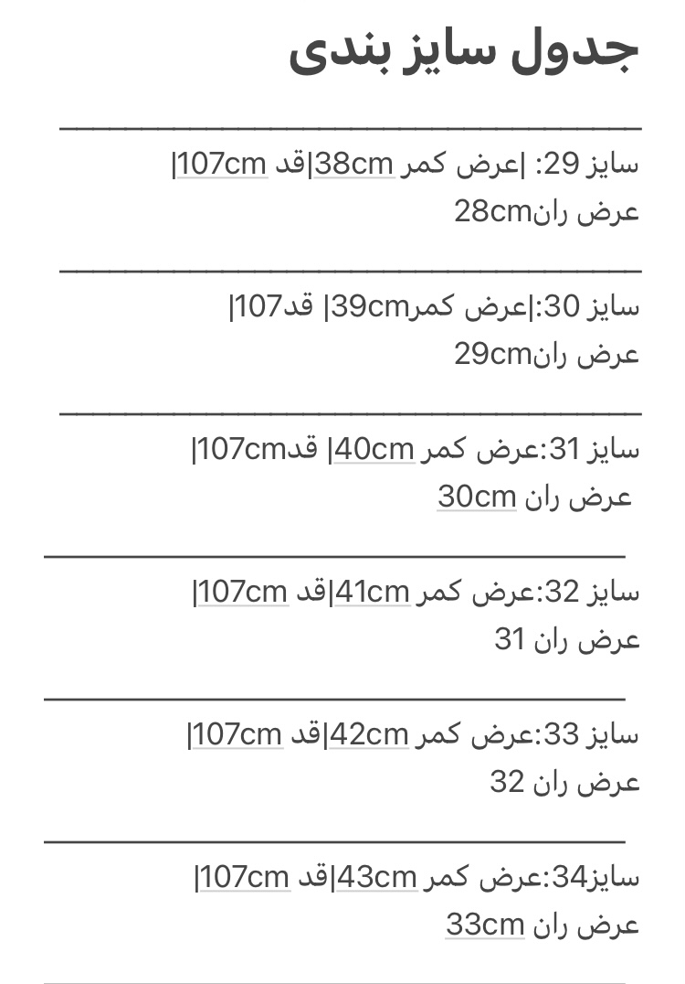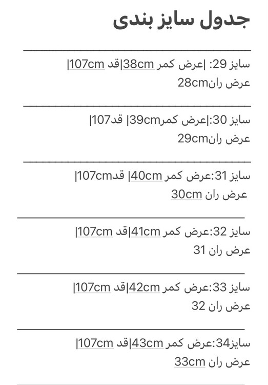 سایزبندی: اسلاید اخر جدول سایز بندی هست